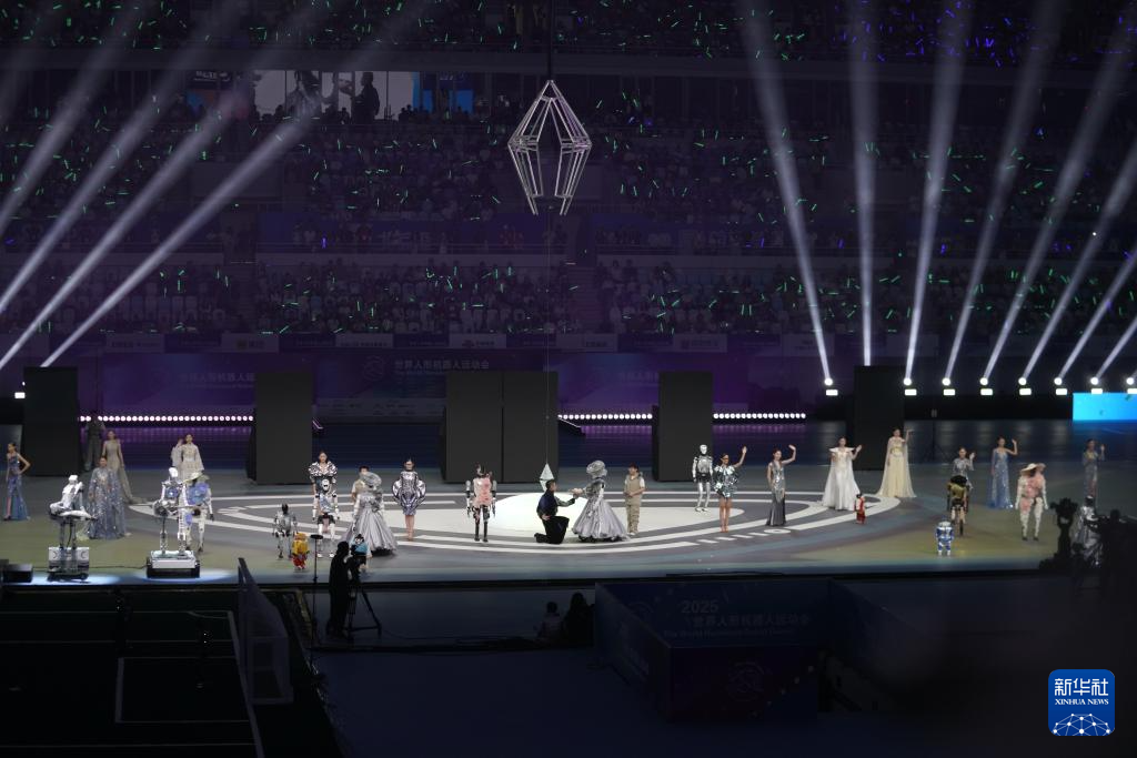 ??歌舞節(jié)目《歡迎來到碳基生命的世界》中,人類舞者與機(jī)器人以流暢協(xié)作演繹“碳基與硅基的對話”;服飾走秀節(jié)目《天工霓裳》則將非遺技藝與未來設(shè)計(jì)完美融合……14日的開幕式上,超百支戰(zhàn)隊(duì)閃耀“冰絲帶”,各式機(jī)甲競展風(fēng)采,機(jī)器人街舞、戲曲輪番登場,更與專業(yè)街舞團(tuán)聯(lián)袂獻(xiàn)藝,生動(dòng)演繹科技與人類文明的碰撞交融。隨著舞臺(tái)中央的“智芯”裝置——鑲嵌藍(lán)色晶體芯片的金屬四棱錐被點(diǎn)亮,2025世界人形機(jī)器人運(yùn)動(dòng)會(huì)正式啟動(dòng)。